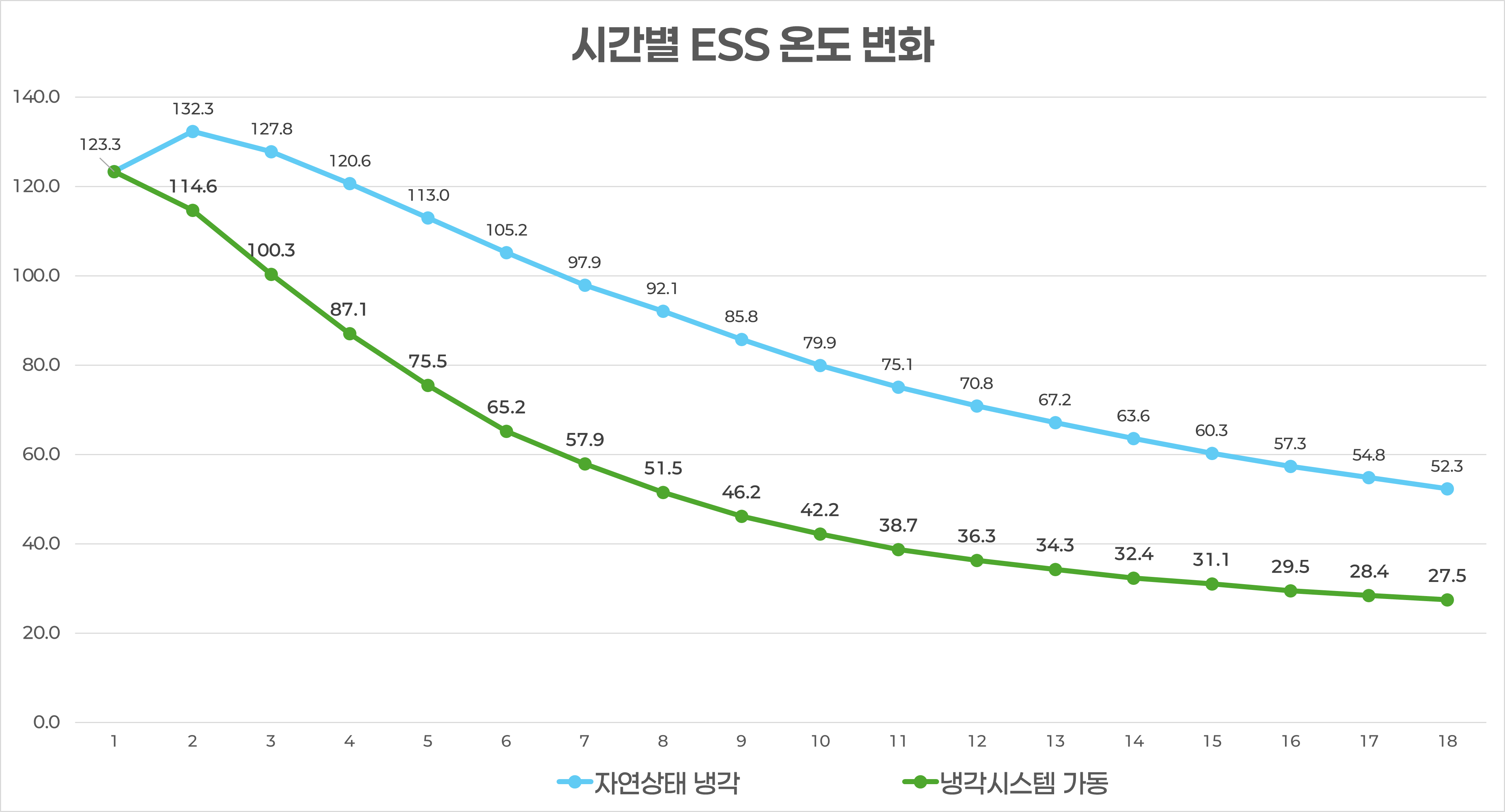 그 결과, 'ESS 시간별 온도 변화' 그래프에 나타난 실험 결과처럼