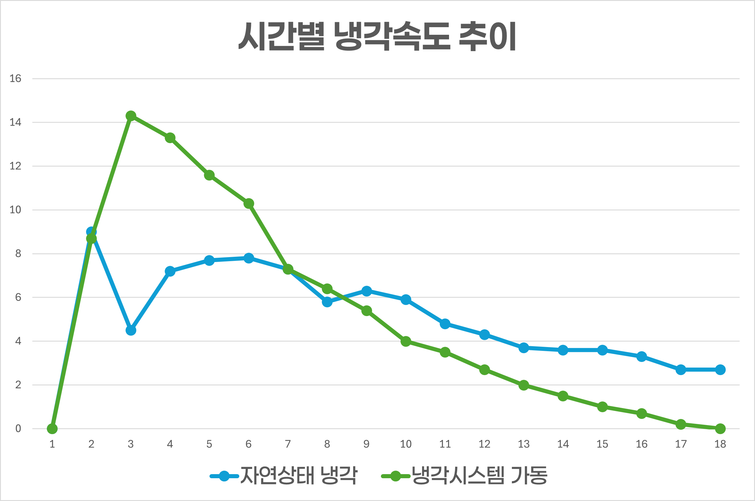 배터리를 얼마나 빠르게 냉각시켜주는지를 알 수 있는 '냉각 속도' 그래프입니다.